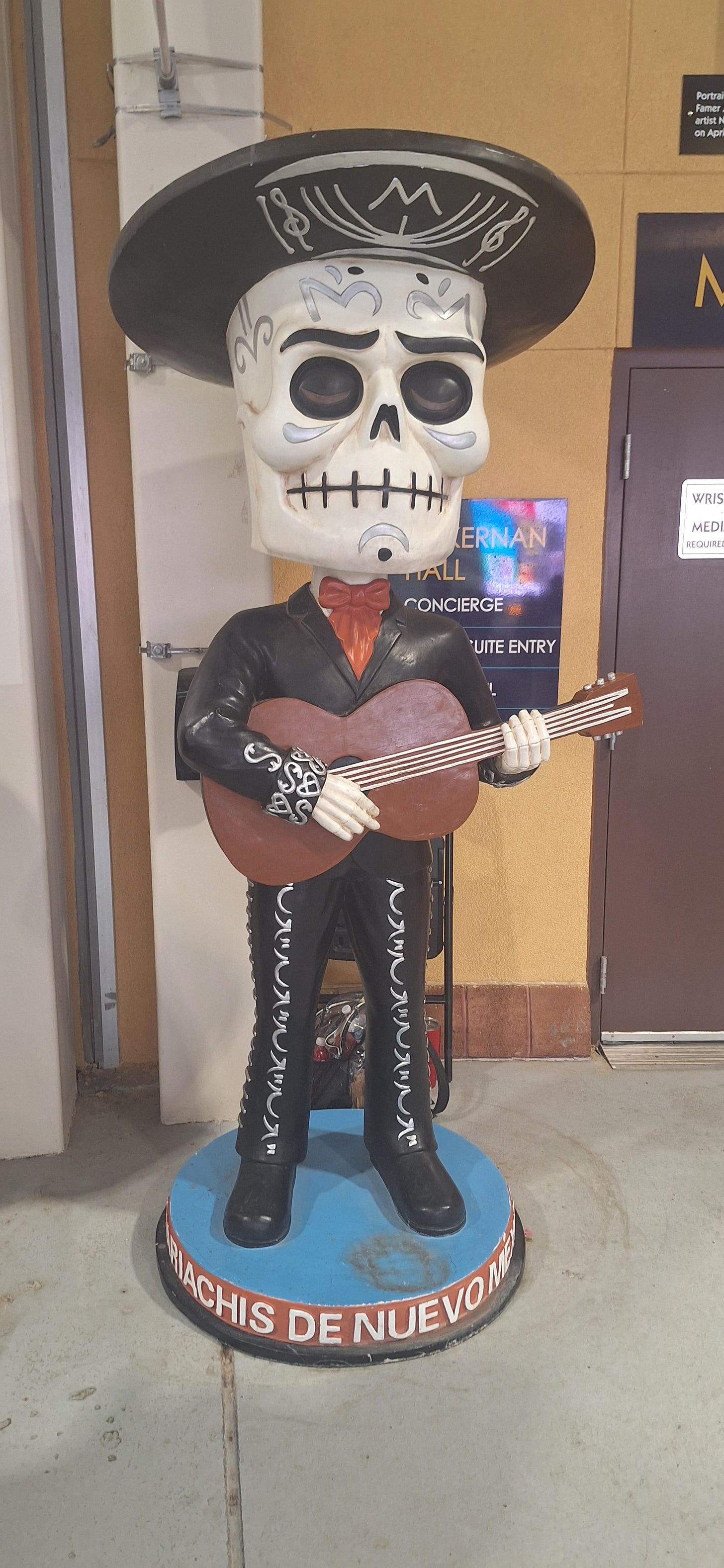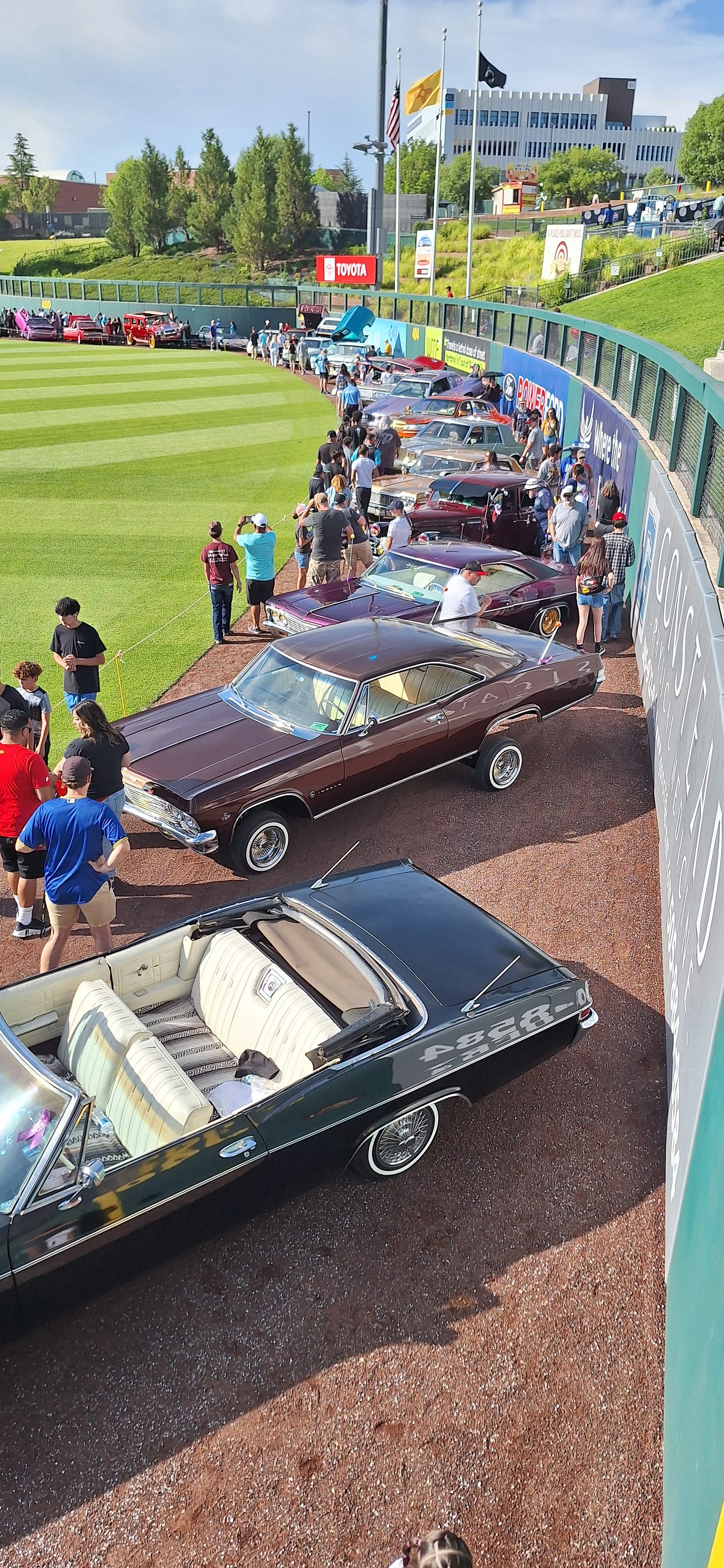On top of that, the team renamed itself the “Mariachis de Nuevo Mexico” for the Saturday night game. The giveaway was a bobblehead of a Day of the Dead skeleton driving a low rider. It will proudly be displayed on my bobblehead shelf. And the Albuquerque low-rider community brought out dozens of cars around the warning track before the game.