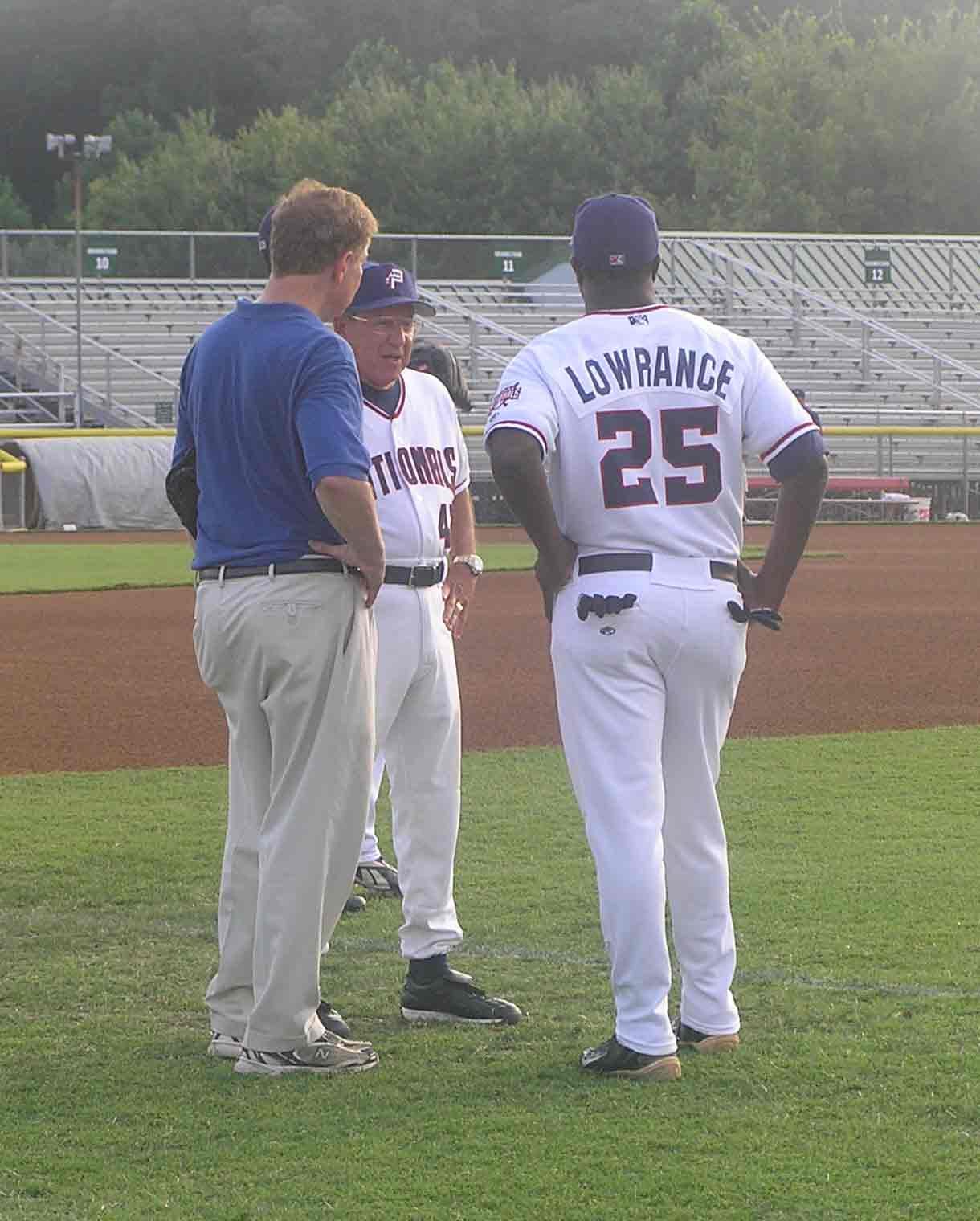 I don't mind some wackiness and promotions as a part of my minor league baseball experience. But it cannot interfere with the baseball on the field. Art Silber, the owner of the Nationals, did just that. Apparently, on Saturday nights, Silber coaches first base for the team...and he did for the first half of the game or so, before taking a seat behind home plate in his baseball uniform. This bugged me in the extreme. What we have here are players and coaches who are trying to work their way up towards the major leagues, and Silber is interfering with that goal for each of them. I'm not certain what or how much a first-base coach contributes, but the idea that this guy is living out some long-unaccomplishable fantasy at the expense of people who still have a legitimate shot at making the bigs...well, that bugged me. He might say he's showing his love of the game; I say it shows he's not taking the game seriously. What if a young rich person (like Master P a few years ago, or maybe Marc Cuban) bought a minor league team and decided that, rather than coaching first base, he wanted to play first base? Why is that any less ridiculous? Mr. Silber, you're out of line. You interfered with the baseball.